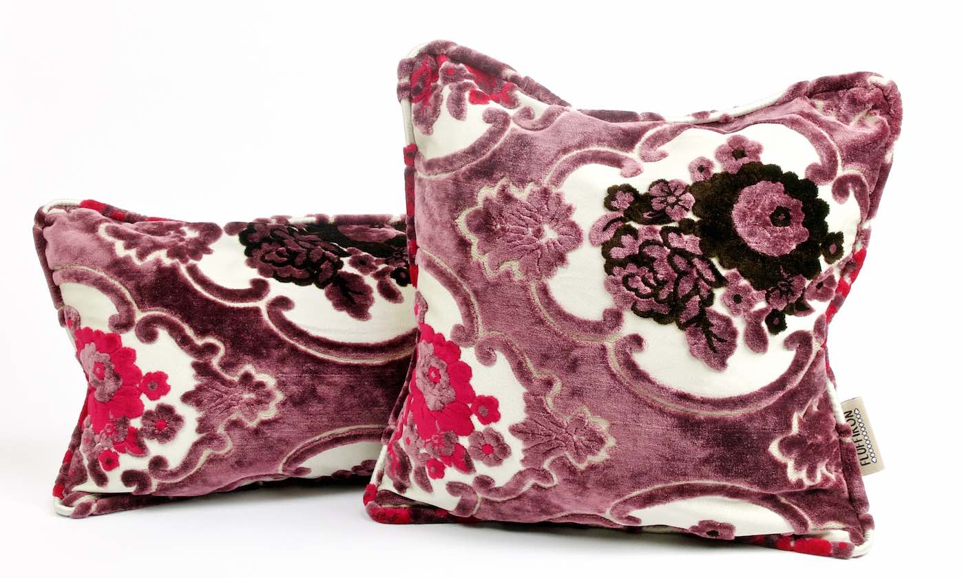 Fluffikon's brocade pillows are made from gorgeous brocade that includes golden threads. Vibrant flower embroidery gives the pillows a rich look.